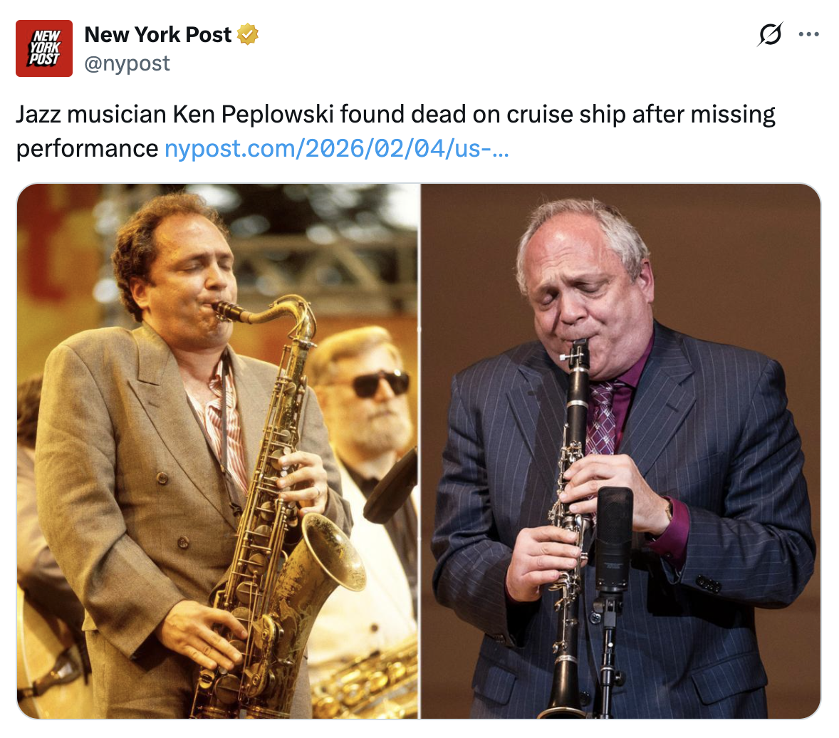 “It’s rare that we have to give bad news to our guests and the community at large. But on February 1st, the final day of The Jazz Cruise ’26, Ken Peplowski died suddenly,” Mergner wrote.