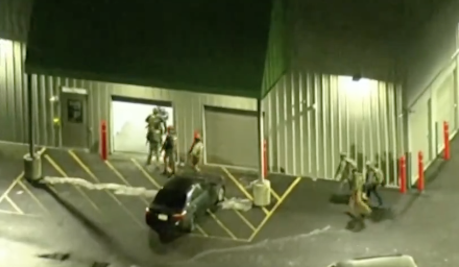 SWAT units can be seen entering the storage facility in Salem, New Hampshire