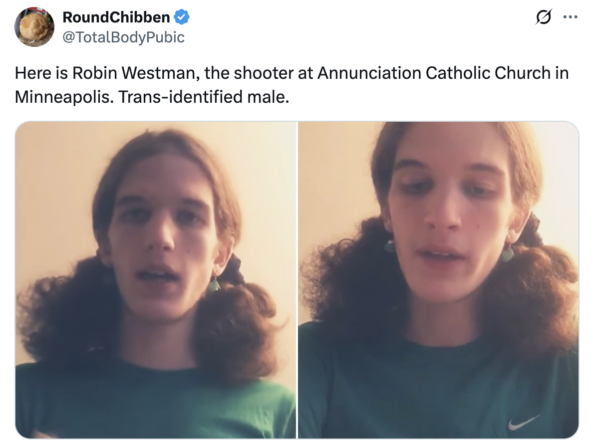 Robin Westman, a biological man who was living as a woman, has been implicated in Wednesday’s shooting at a Catholic church in Minneapolis, where at least two people are dead and more than a dozen children have been wounded. The church serves a K-8 school that just began its school year two days ago.