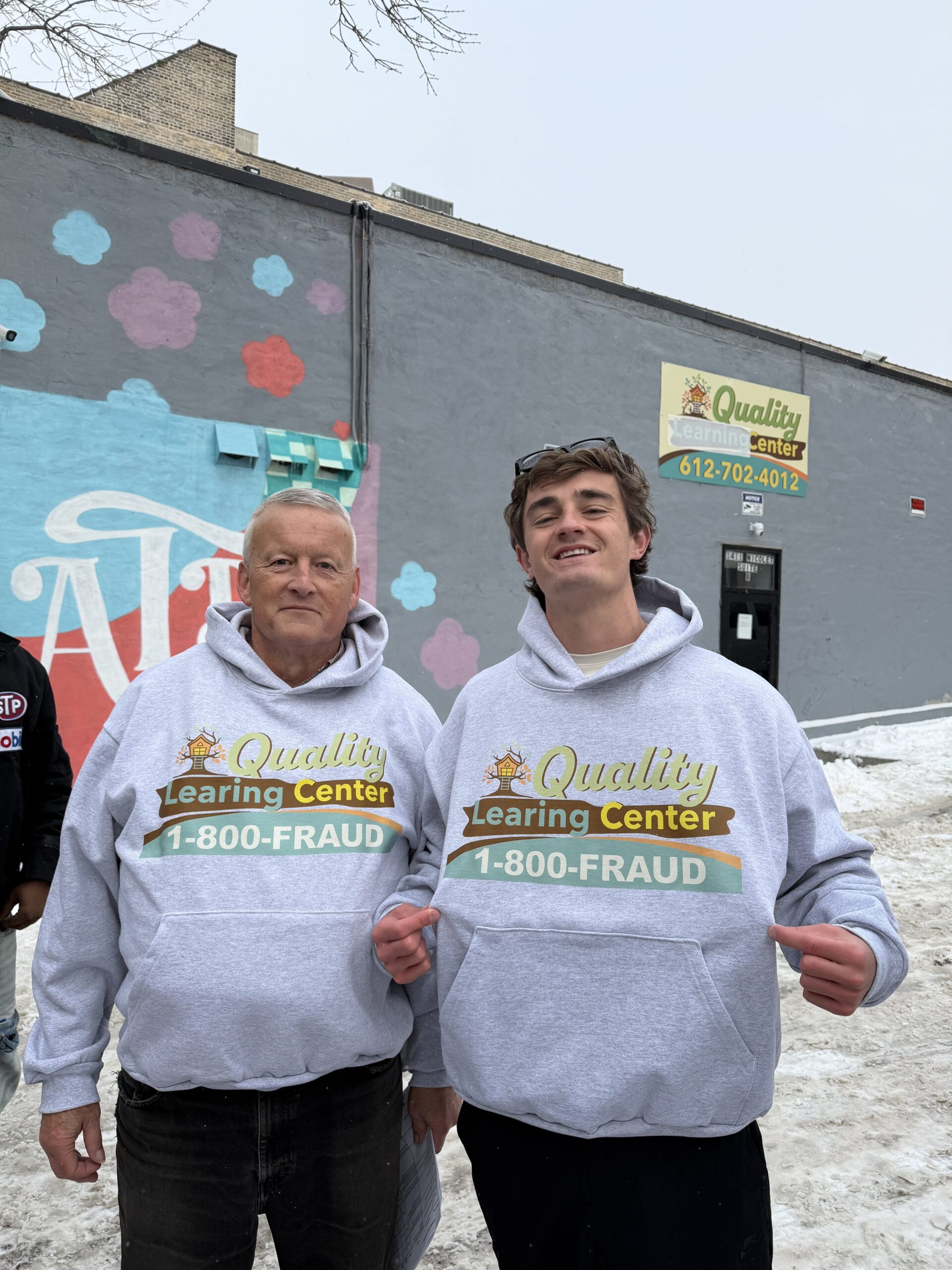Journalist Nick Shirley and “David” outside of “Quality Learing Center” in Minneapolis.