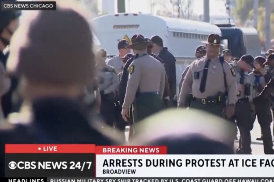During the live segment from Broadview, Illinois, just 12 miles west of Chicago, the correspondent tried to describe what she saw among the demonstrators.