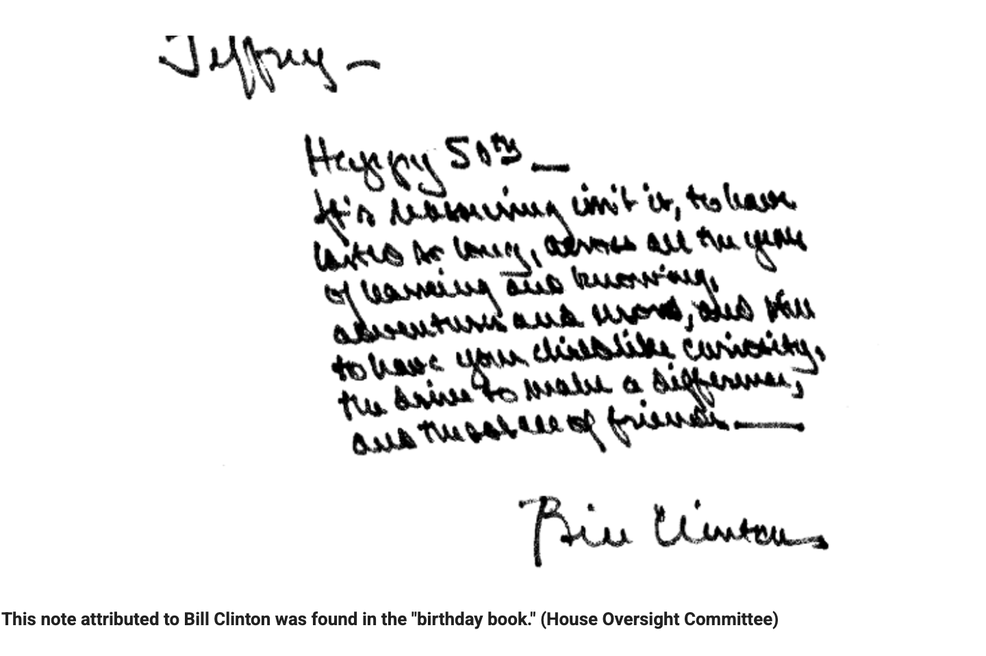 In that “leather-bound book” was a letter from Clinton to Epstein celebrating his 50th birthday. The letter was reportedly obtained by Ghislaine Maxwell, Epstein’s mistress, who compiled the book.
