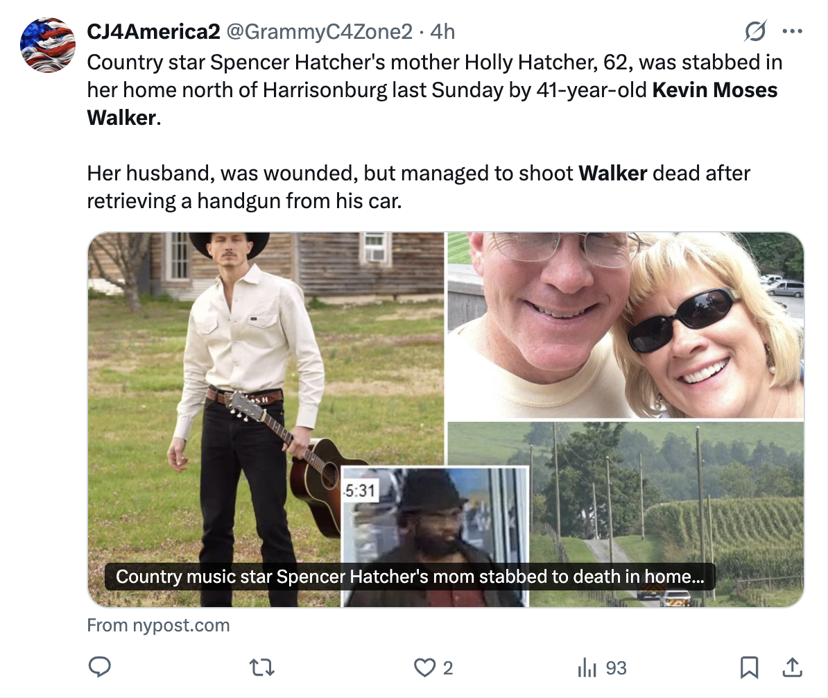 A heartbreaking tragedy occurred over the weekend when the mother of country music up-and-comer Spencer Hatcher was stabbed to death during a home invasion.