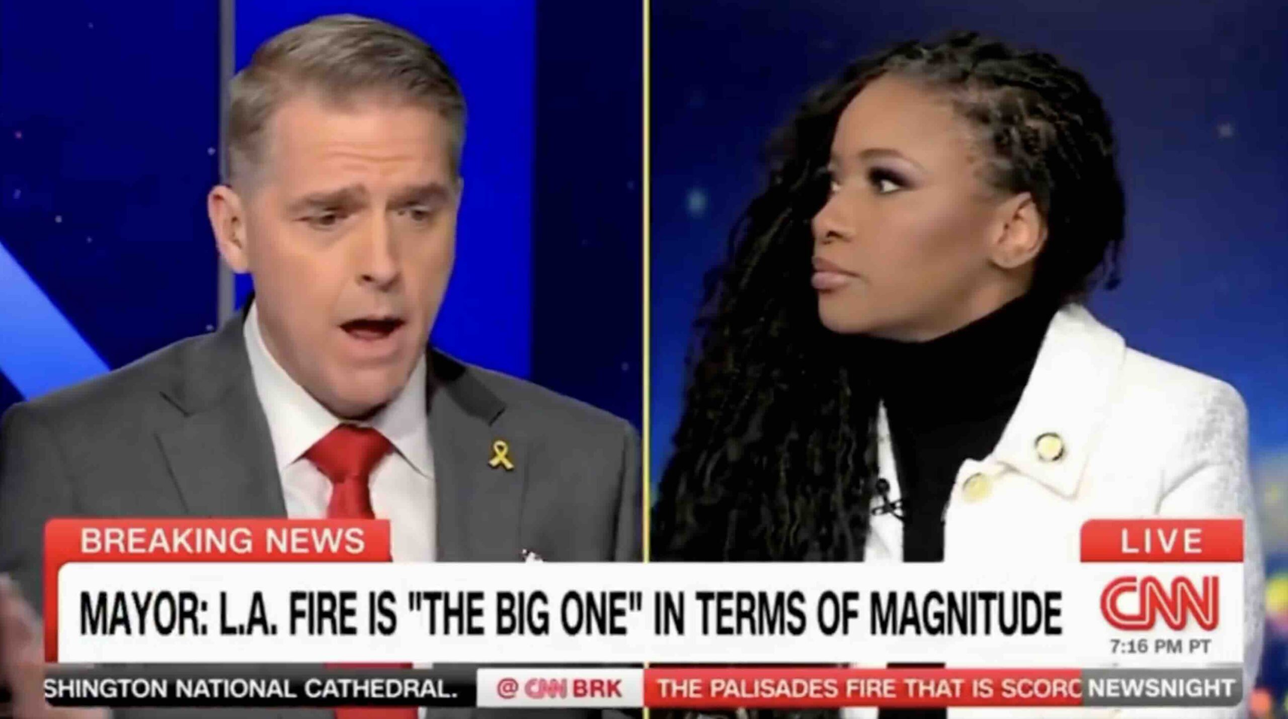 Scott Jennings, CNN’s best-known conservative commentator, got a rise out of Jamie Crockett (D-TX), the “Squad” Democratic congresswoman from Texas, when he cited recent revelations that the Los Angeles mayor sought to appoint an entirely LGBTQ leadership atop the Los Angeles Fire Department. “You may recall news stories from last year… that said there were too many white men who were firefighters in California, and we need to have a program in California to make sure we don’t have enough white men as firefighters,” Jennings said before a live panel of guests exploded in squawking. “We have DEI, we have budget cuts,” Jennings said as he attempted to raise his voice over objections, “and yet I’m wondering now if your house is burning down, how much do you care what color the firefighters are?”