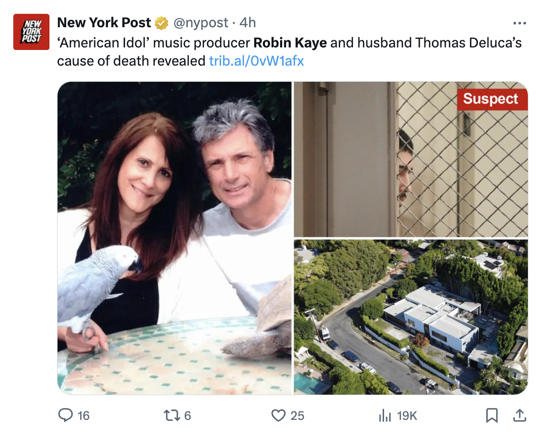 Robin Kaye, a decorated music supervisor for the show, and her husband, Thomas Deluca, both died from multiple gunshot wounds, according to a death certificate obtained by People on Tuesday.