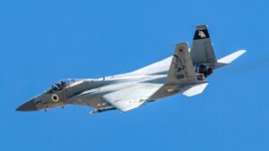 Rehovot, Israel – April 11, 2019: Israeli Air Force F-15 “Baz” takes off
