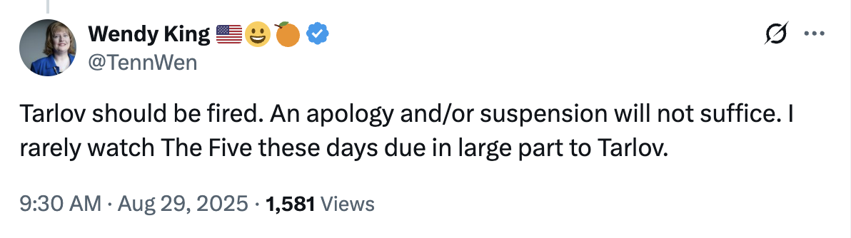 User Wendy King replied, “Tarlov should be fired. An apology and/or suspension will not suffice.”