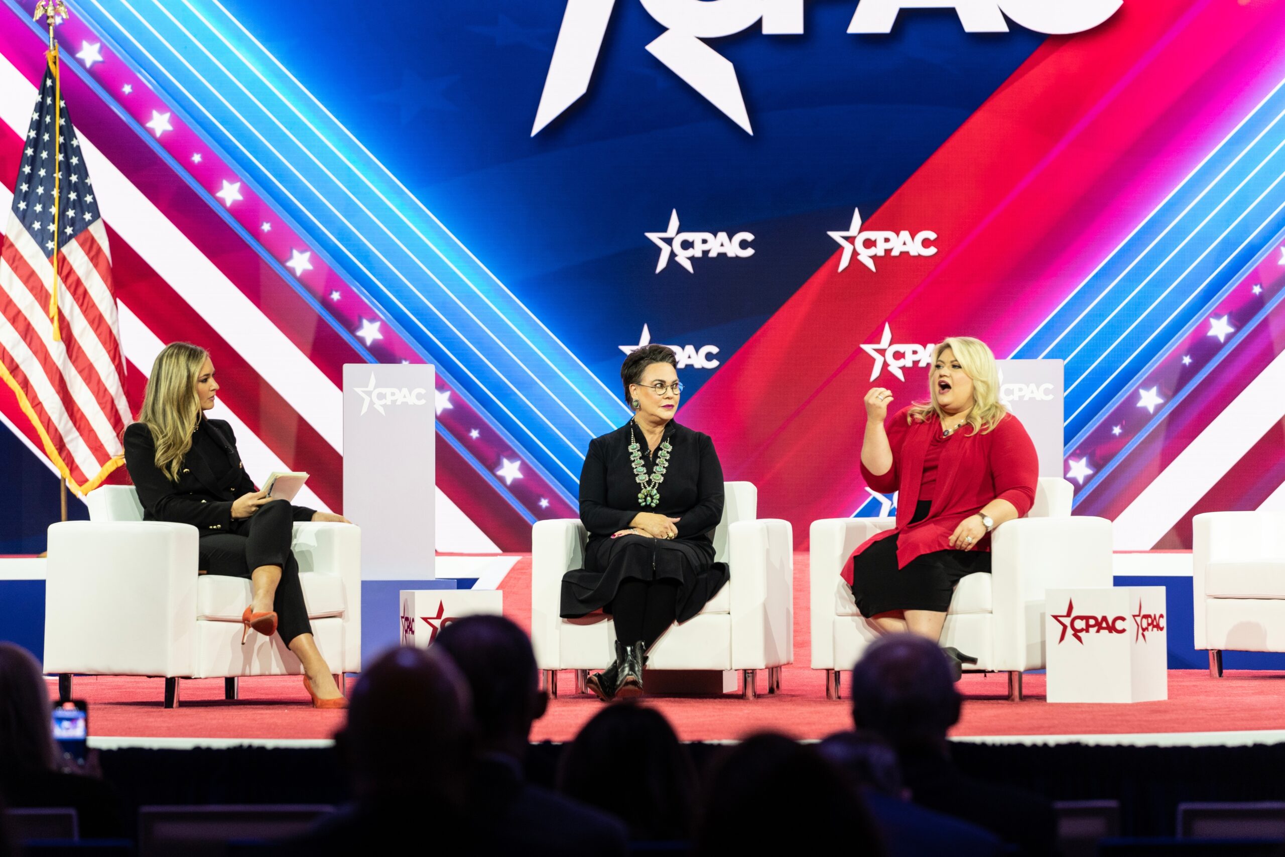Katie Pavlich in conversation with Congresswomen Harriet Hageman and Kat Cammack on the 1st day of CPAC Washington, DC conference at Gaylord National Harbor Resort Convention on March 2, 2023