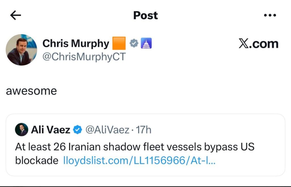 Murphy’s critics say the political pattern is obvious: hammer Trump first, worry about optics later. They argue the blockade and the wider pressure campaign are designed to force Iran to choose between economic pain and a deal, and that celebrating workarounds only helps Tehran.