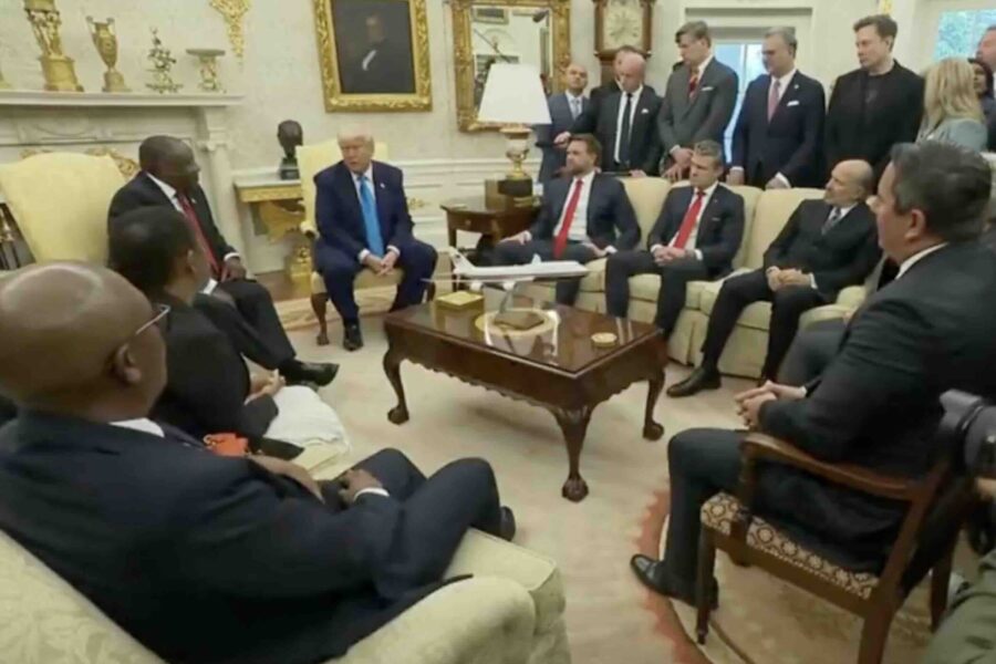 Before it aired, Ramaphosa opened the meeting with a diplomatic explanation of the hope that President Trump will “listen to the voices of South Africans” who are in agreement with him that “no white genocide is happening here.”
