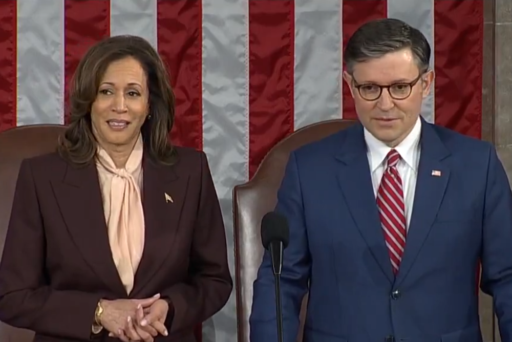 The moment was as symbolic as it was historic, with Harris presiding over her own electoral defeat. Flanked by House Speaker Mike Johnson (R-LA), Harris read the results aloud with a stoic demeanor, pausing briefly as she reached Trump’s final tally.