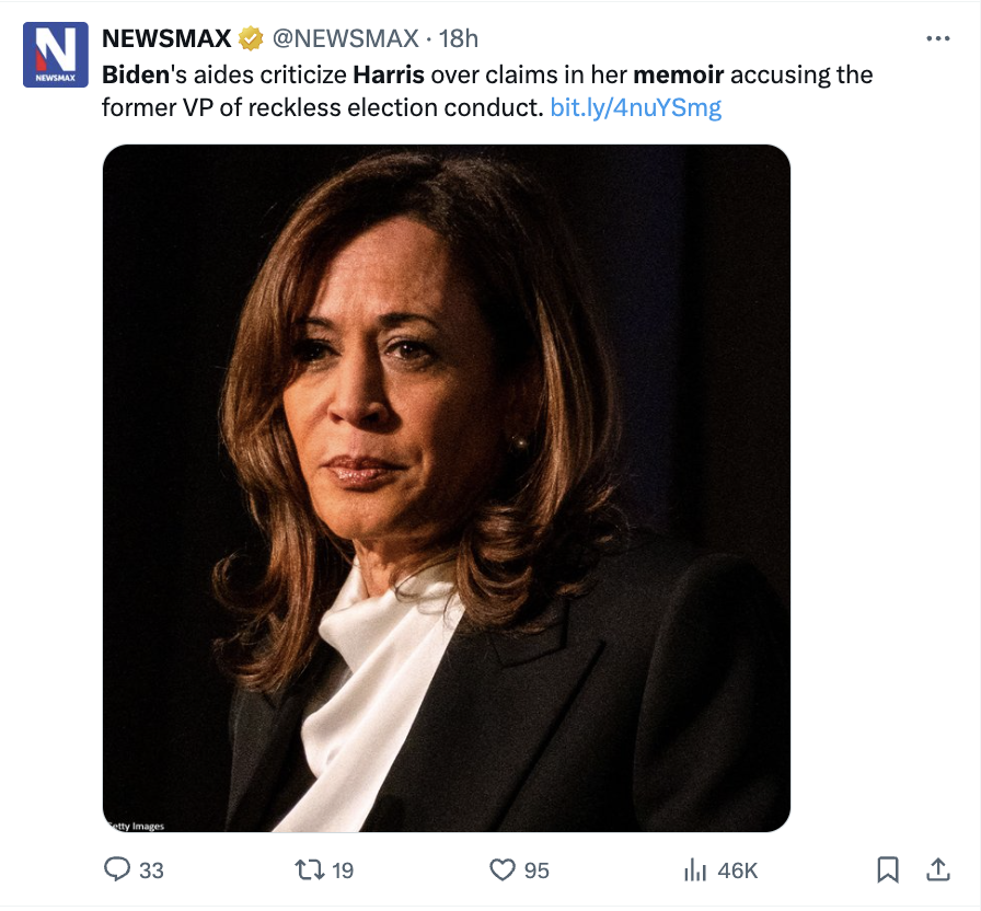 Some former White House colleagues, suspicious about Harris’s intent to run again, described the release of book snippets as a self-serving project meant to gently throw her former boss under the bus.