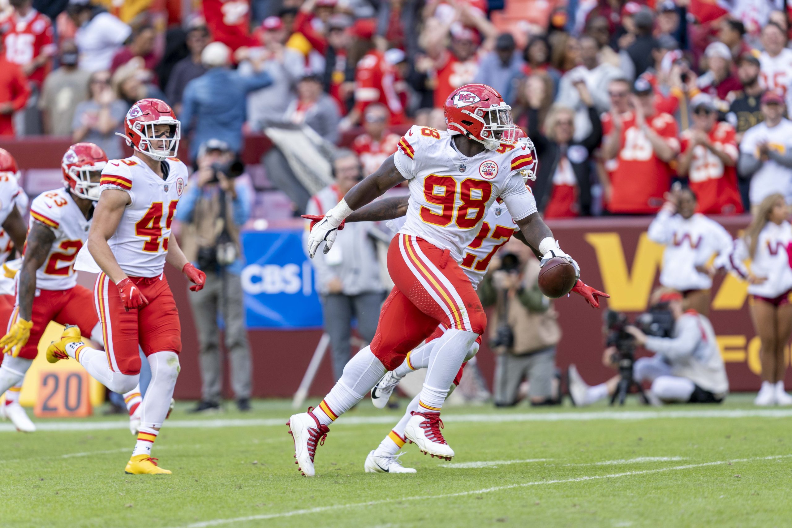 After the game, Wharton and a handful of his teammates came over to greet a contingent of Chiefs fans who travelled to North Carolina for the road game. Just before the players reached the fans, a small child fell headfirst from the stands as he was reaching to greet the players.