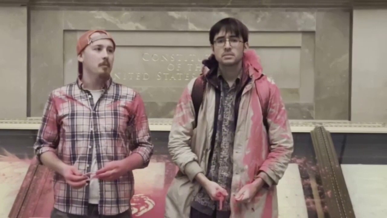 With the aim of raising awareness about climate change, Donald Zepeda of Maryland and Jackson Green of Utah dumped red powder all over the National Archives Rotunda, one of the most popular attractions for students, tourists and other visitors to the nation’s capitol. The display houses some of the nation’s most important documents, including the U.S. Constitution and the Declaration of Independence.