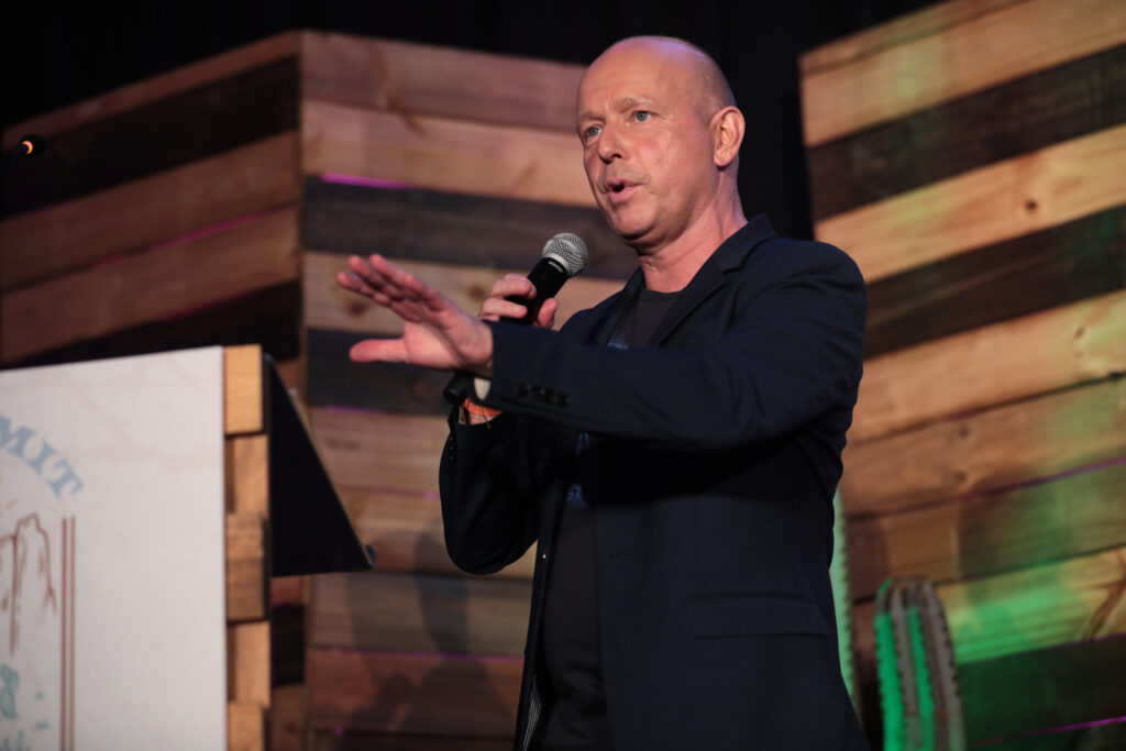 Steve Hilton speaking with attendees at the American Conservation Coalition’s 2023 Summit at the Salt Lake City Marriott City Center in Salt Lake City, Utah