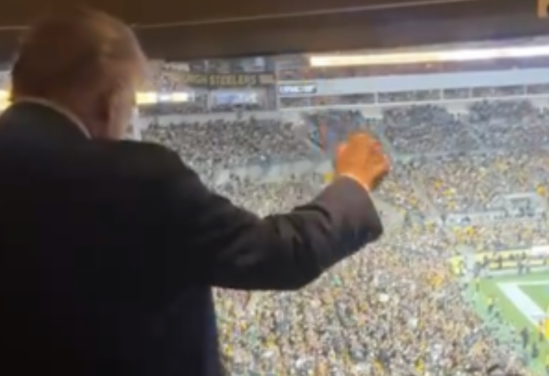 The former president was seen on the national broadcast for less than 10 seconds where he waved appreciatively to throngs of black-and-yellow-clad Steelers fans. Some present for the game shot video of the crowd chanting “USA! USA!” during breaks in the game, none of which was captured by NBC when it chose to briefly acknowledge his presence. “The 45th president, Donald Trump, in attendance tonight, the invited guest of one of the suite-holders here,” said commentator Mike Tirico before the network quickly switched to an overhead shot of the packed stadium.