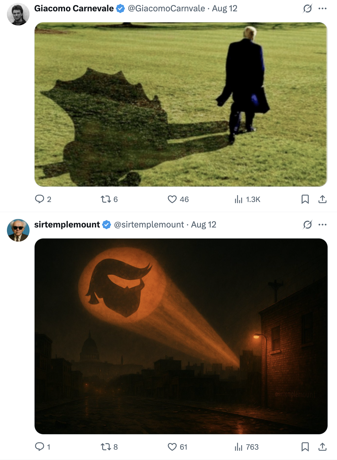 Another user posted Trump casually strolling across the White House lawn as a caped shadow trails behind him.