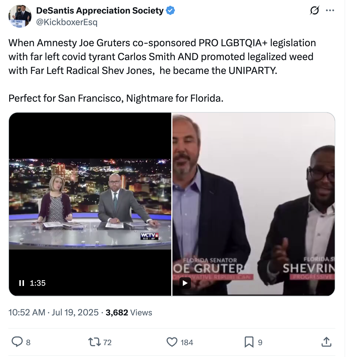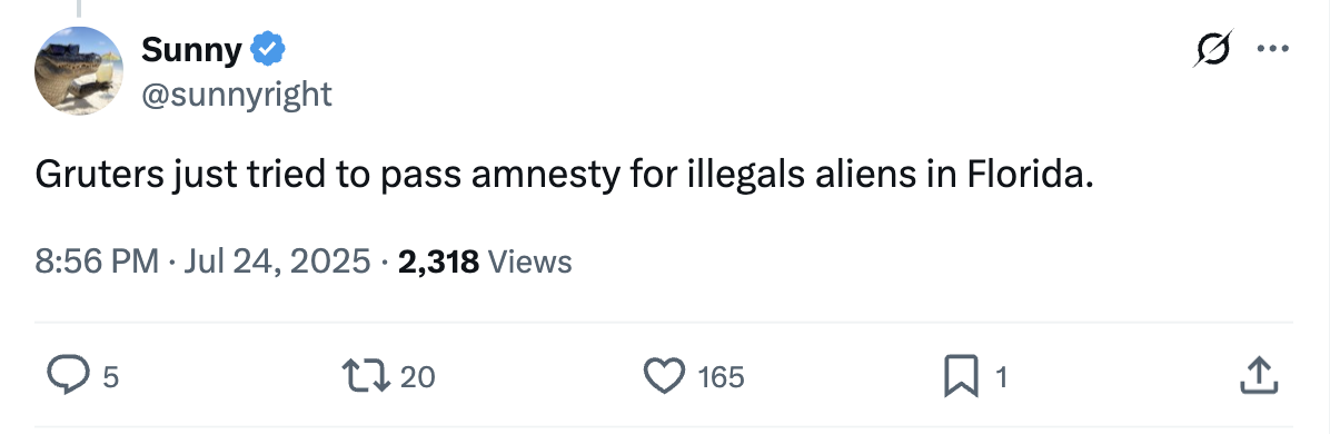 “Gruters just tried to pass amnesty for illegal aliens in Florida,” wrote another user.