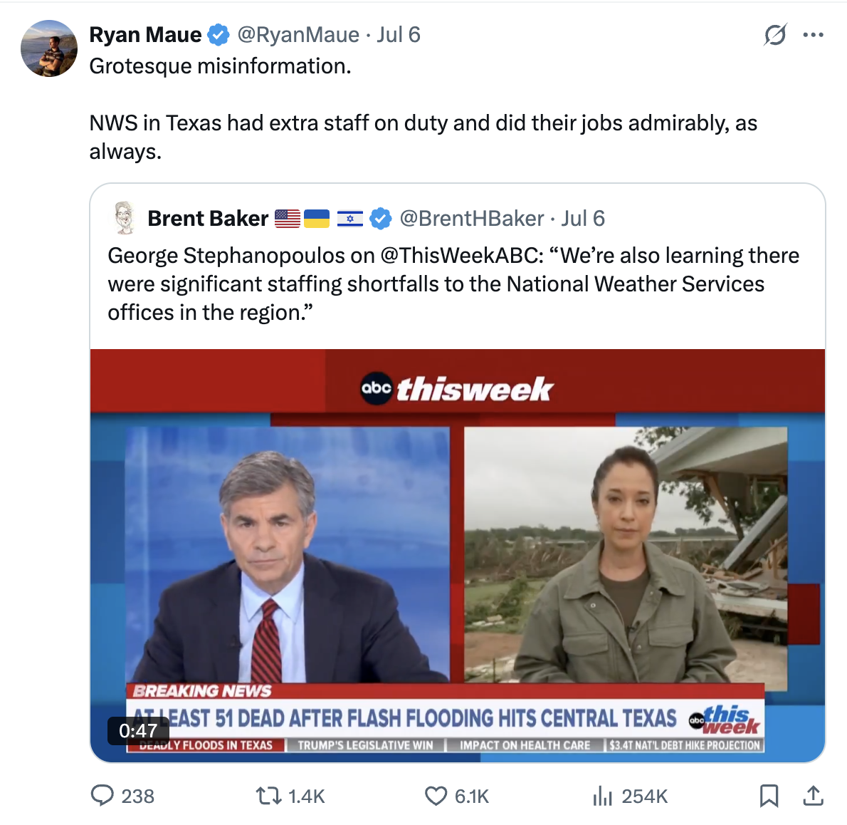 Even Matt Lanza, a journalist who has been critical of the Trump administration’s cuts to NWS and NOAA, begrudgingly admitted on Saturday that they were unrelated to the disaster that unfolded overnight.