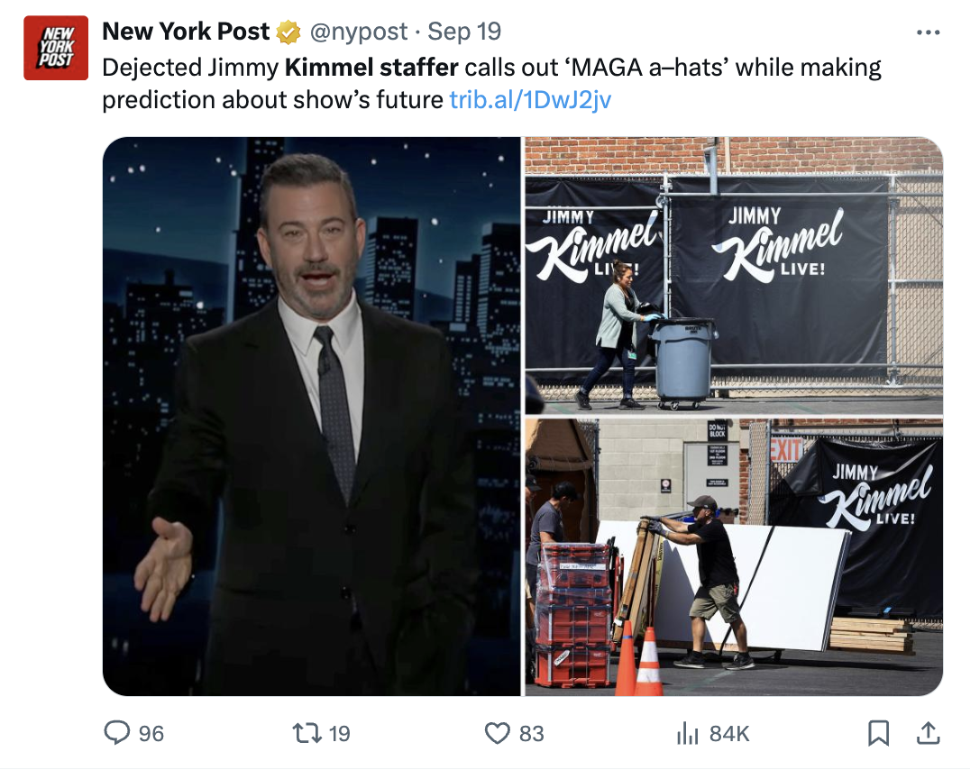 The tone-deaf — and demonstrably false — assertion led ABC to pull Kimmel’s show “indefinitely,” and any path forward remains uncertain, if not untenable, the staffer said recently.