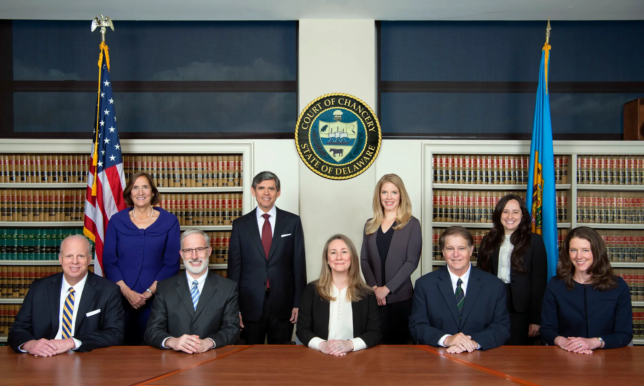 Kathaleen St. J. McCormick appears with members of the Delaware Court of Chancery.