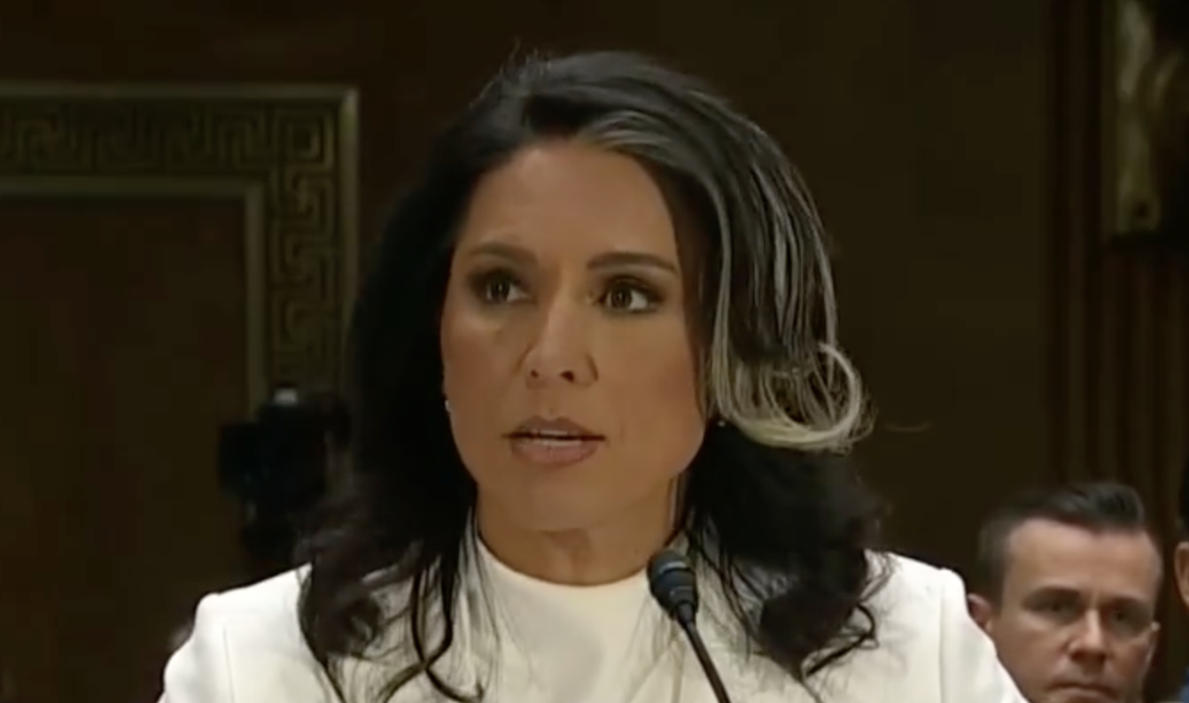 “The American people elected Donald Trump not once but twice, and yet the American intelligence agencies were politicized by his opponents to undermine his presidency and falsely portray him as a puppet of Vladimir Putin,” Gabbard said in between resolute looks at members of the U.S. Senate Intelligence Committee.