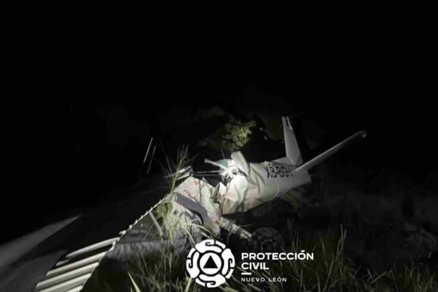 “It has been confirmed that a light aircraft has crashed and two people have died, apparently a man and a woman, inside the runway and near to the Pesqueria River at the Mitras Industrial Estate.”