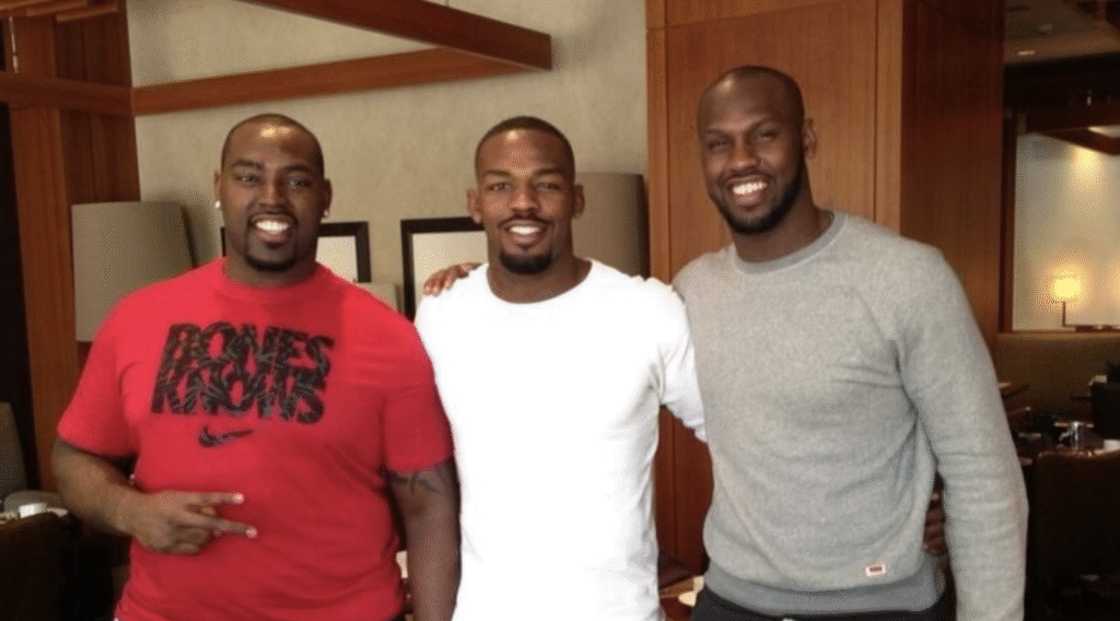 Arthur Jones (left) is survived by his younger brothers Jon (center), widely considered among the greatest UFC fighters of all time, and Chanlder (right), who was named to four Pro Bowl teams in his own NFL career