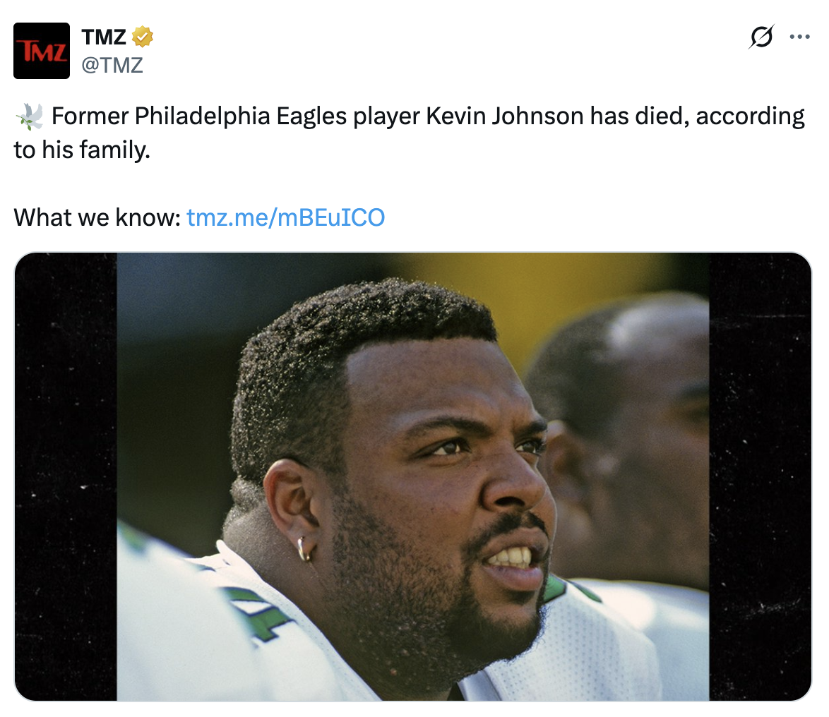 He later landed with the Eagles, where he played during the 1995 season. Johnson appeared in 11 games that year, recording six sacks, 19 tackles, and a “fumble recovery for a touchdown,” according to TMZ Sports.