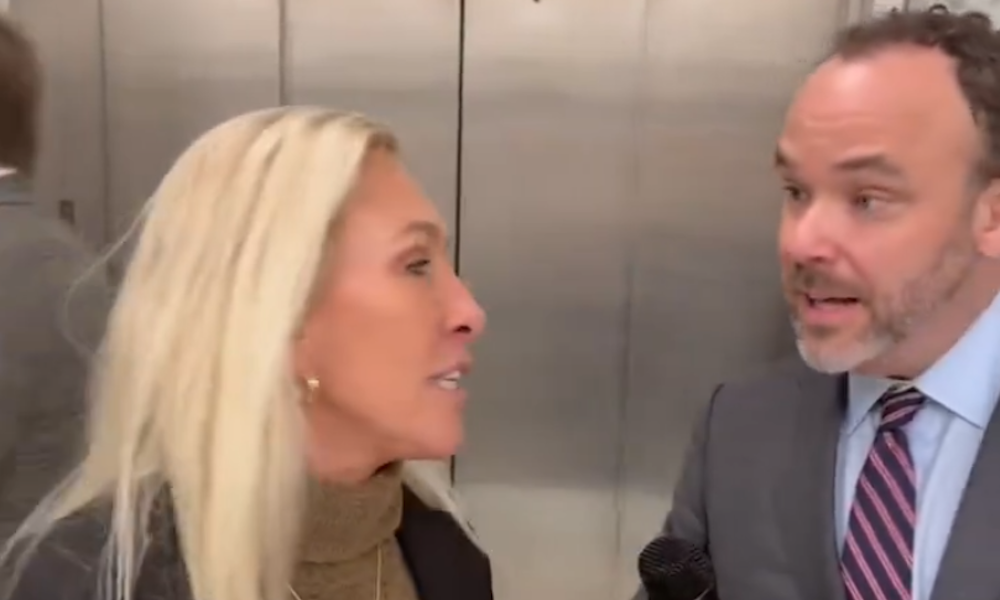 House Republican firebrand Marjorie Taylor Greene (R-GA) unloaded on a campaigner Tuesday in a heated confrontation over Social Security, throwing a campaign mailer to the floor...
