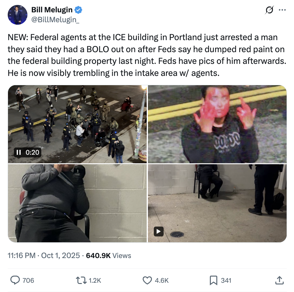 🚨 FAFO ALERT: A degenerate leftist just jumped onto federal property at the Portland ICE facility and CHALLENGED agents to “do something about it”