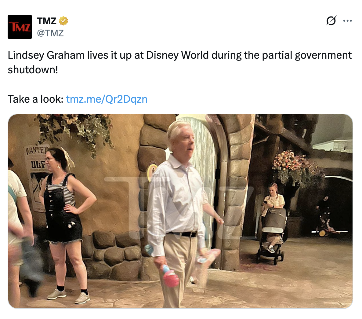 Republican challenger Mark Lynch also went after Graham, writing, “Lindsey is at Disney World while the world burns.”