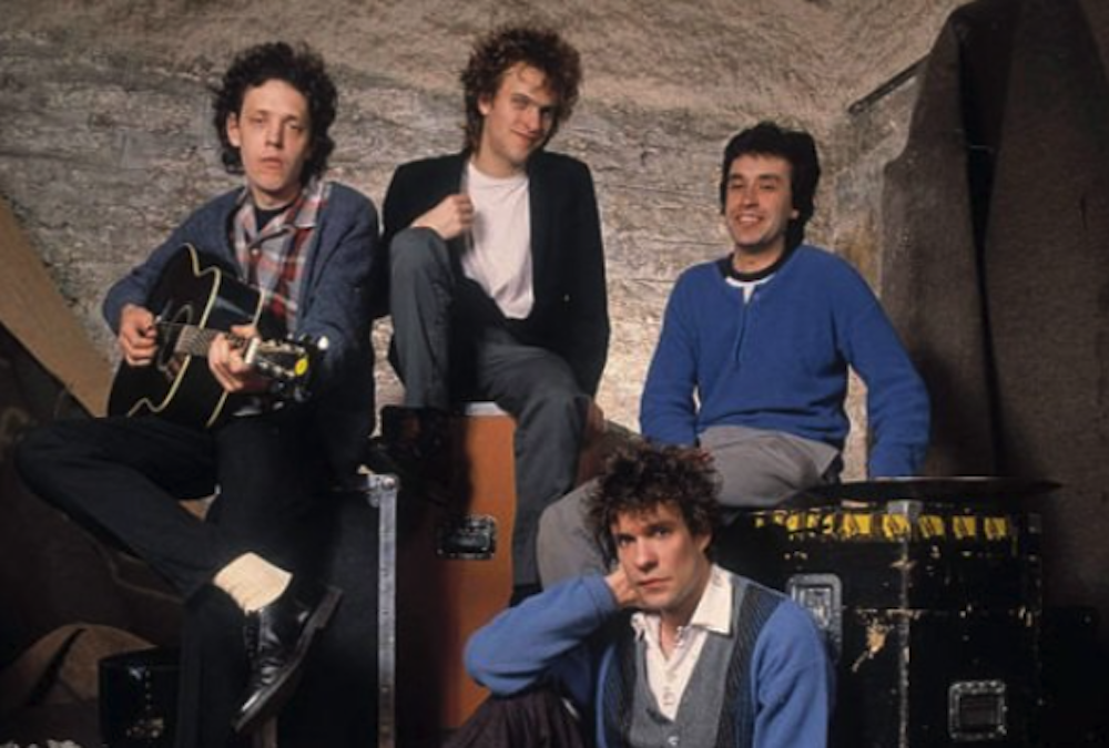 American rock band The Replacements in a 1984 publicity photo taken by Laura Levine. Left to right: Bob Stinson (lead guitar), Tommy Stinson (bass guitar), Chris Mars (drums), and Paul Westerberg (vocals & guitar).