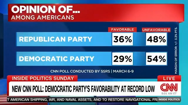 Less than one percent of Democrats say they are satisfied with the current state and direction of the United States, a record low, according to a...