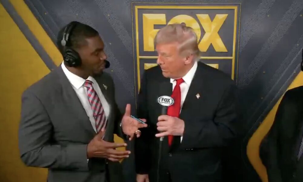 President Donald Trump made a surprise stop in the FOX broadcast booth Sunday, joining Kenny Albert and Jonathan Vilma during the Washington Commanders’ matchup with the...