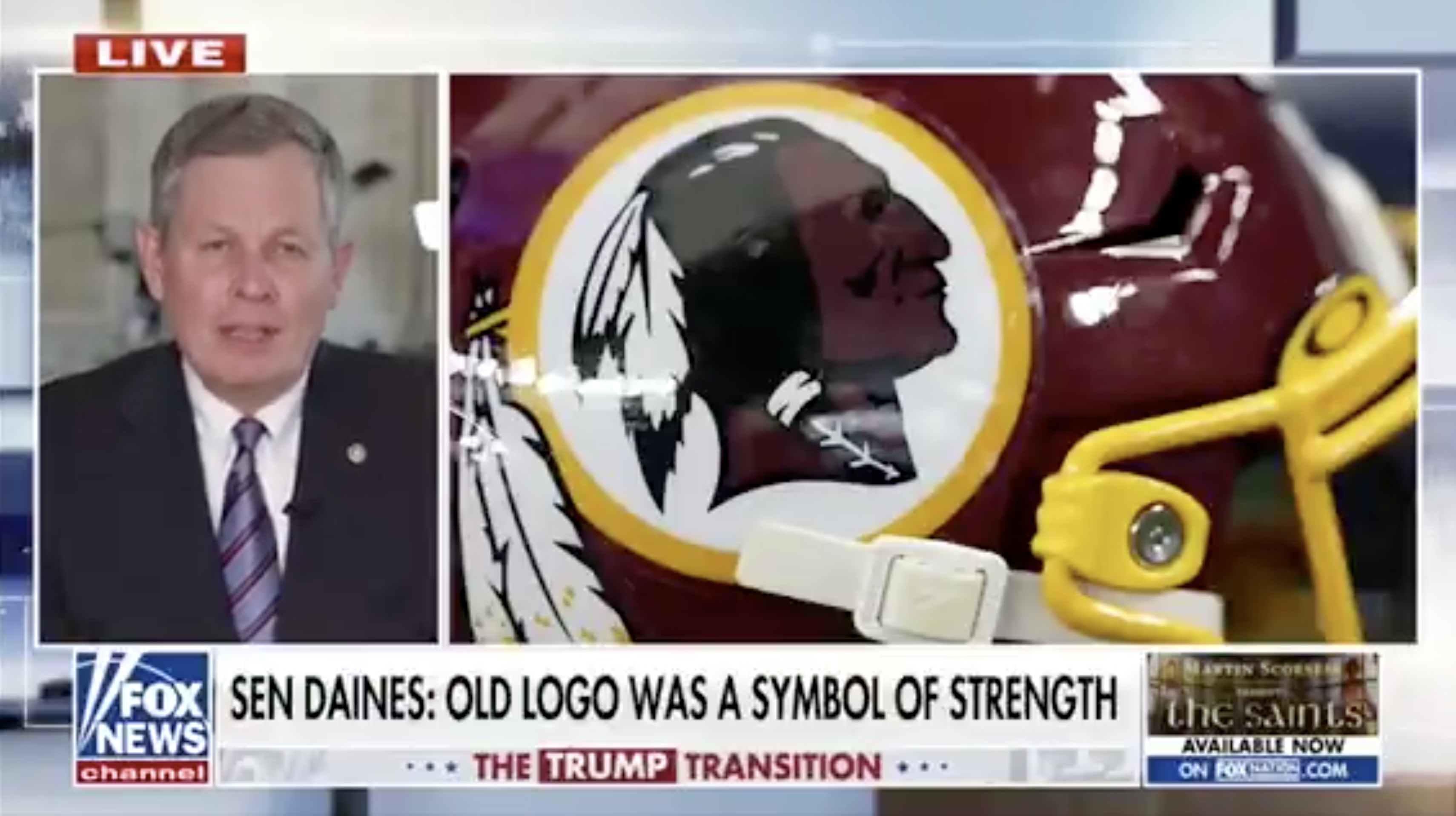 As part of an agreement with the team, Daines has pledged to approve legislation authorizing the construction of a new stadium for the Washington, D.C. team. In return, ownership has agreed to never censor the old logo, which was removed along with the Redskins name in 2020 during the height of the Black Lives Matter protests. Two years later, the team introduced its current name, but even those changes weren’t enough: in D.C., a local news station sparked an outcry by conservatives after stating it would censor the old logo during its coverage of the team. Daines previously highlighted the censoring of the Redskins logo by the NFL’s social media account when it honored past team members.