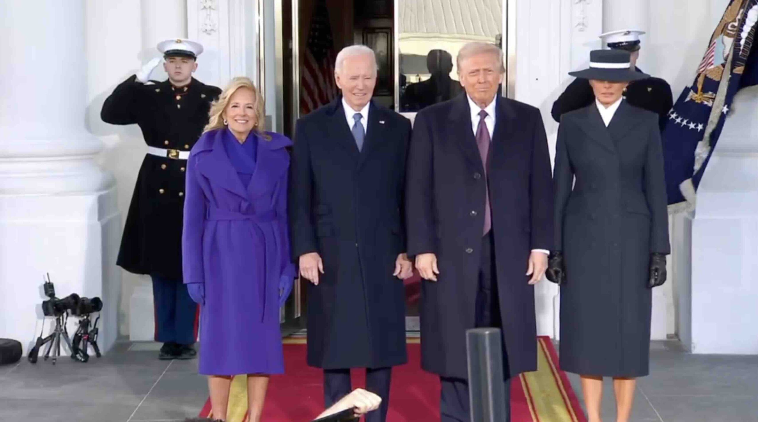 The pomp and circumstance of President-elect Donald Trump’s first day in office began with a surreal moment when the Bidens greeted him and former first lady Melania Trump as they arrived at the White House.