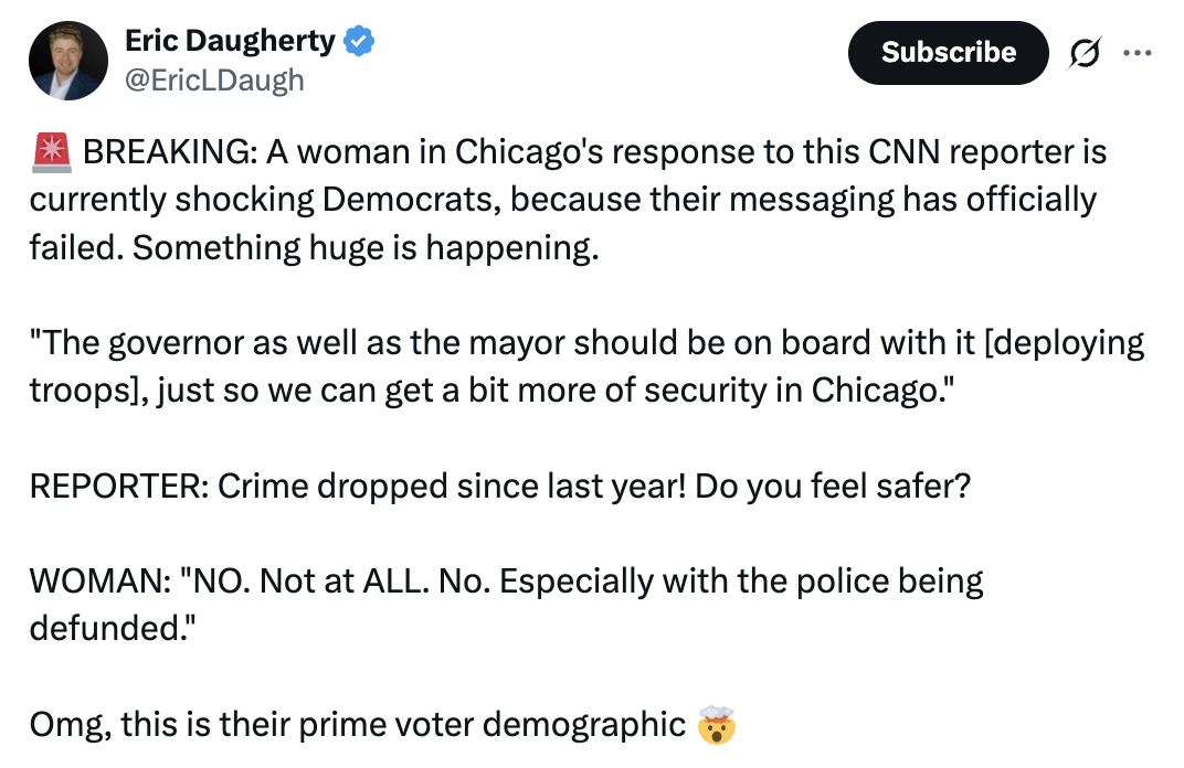 When a network correspondent pulled one woman aside to ask for her thoughts on Trump’s suggestion that he’ll “probably” send the National Guard into Chicago, the result may have been exactly the opposite of what the reporter thought would happen.