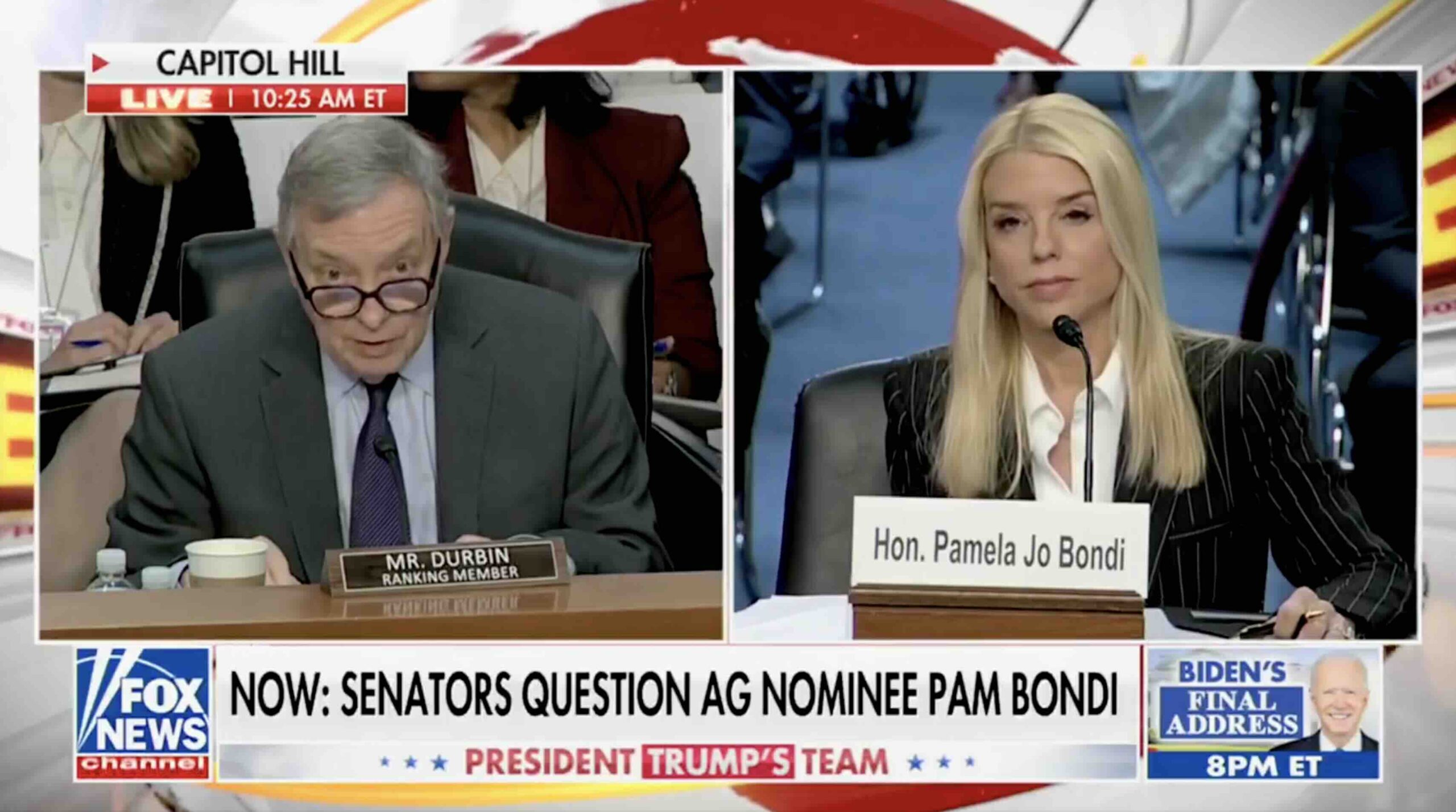 A subdued U.S. Senate confirmation hearing for attorney general nominee Pam Bondi briefly became heated when the former prosecutor lashed out at top Democratic Sen. Dick Durbin (D-IL) for lobbying a “gotcha” question meant to throw her off her game.