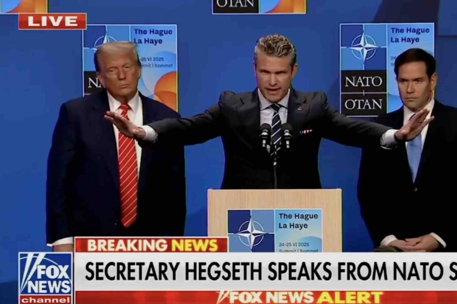 While taking questions alongside Trump, Hegseth told a roomful of NATO attendees, “There’s a reason the president calls out fake news for what it is.”
