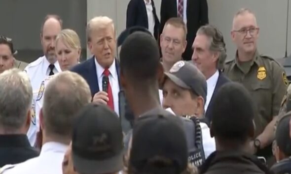 President Donald Trump addressed a large group of federal agents and National Guardsmen before personally heading “on patrol” with some of them on Thursday night. The president discussed his federal takeover of the city’s police force, which was done under the Home Rule Act on August 7, 2025. As part of his strategy, the president … Continue reading WATCH: Trump Addresses Federal Agents Before Going ‘On Patrol’ In DC