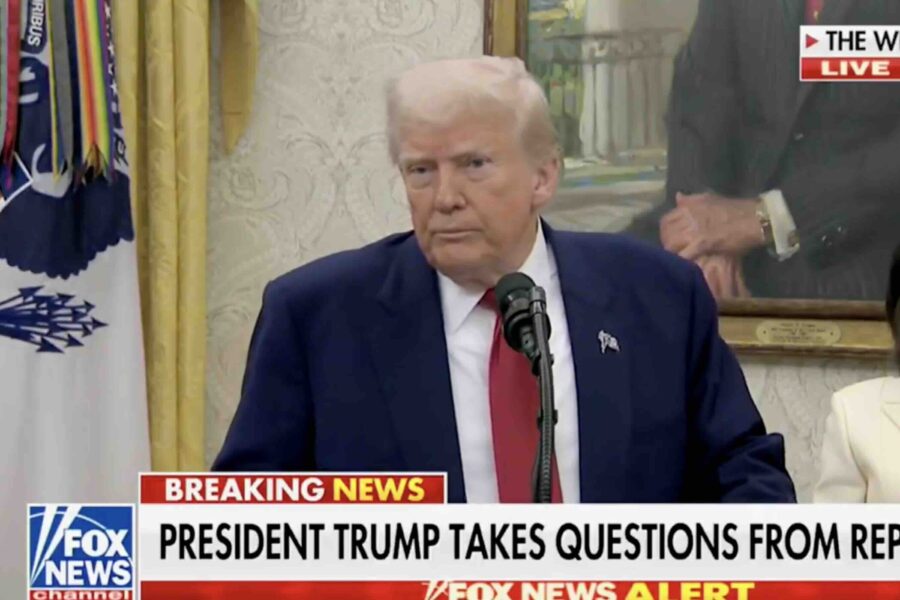 Taking unplanned questions from the press, Trump looked on sternly as CNBC White House correspondent Megan Cassella cited a source claiming he “always chickens out” when it comes to implementing tariffs. The question occurred against the backdrop of his decision to pause a planned 50% tariff on European Union nations on Tuesday.